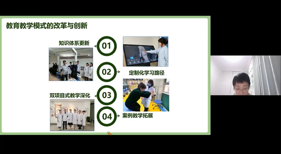 課上,王歡副教授聚焦“產教賦能,康護未來”這個話題,并以職業院校世界技能大賽康復治療技術賽項為例,從國家政策、產教融合的重要性、大賽成果的落實路徑、大賽成果普及措施,以及產教融合教學課程展示這五個方面進行了探討。
